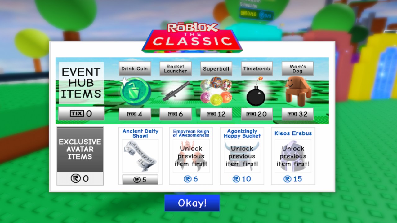 These will cost you Tix, a separate currency that will give some Roblox veterans PTSD flashbacks. You will find Tix hidden around The Classic Experiences and as rewards for completing The Classic Hub Quests.