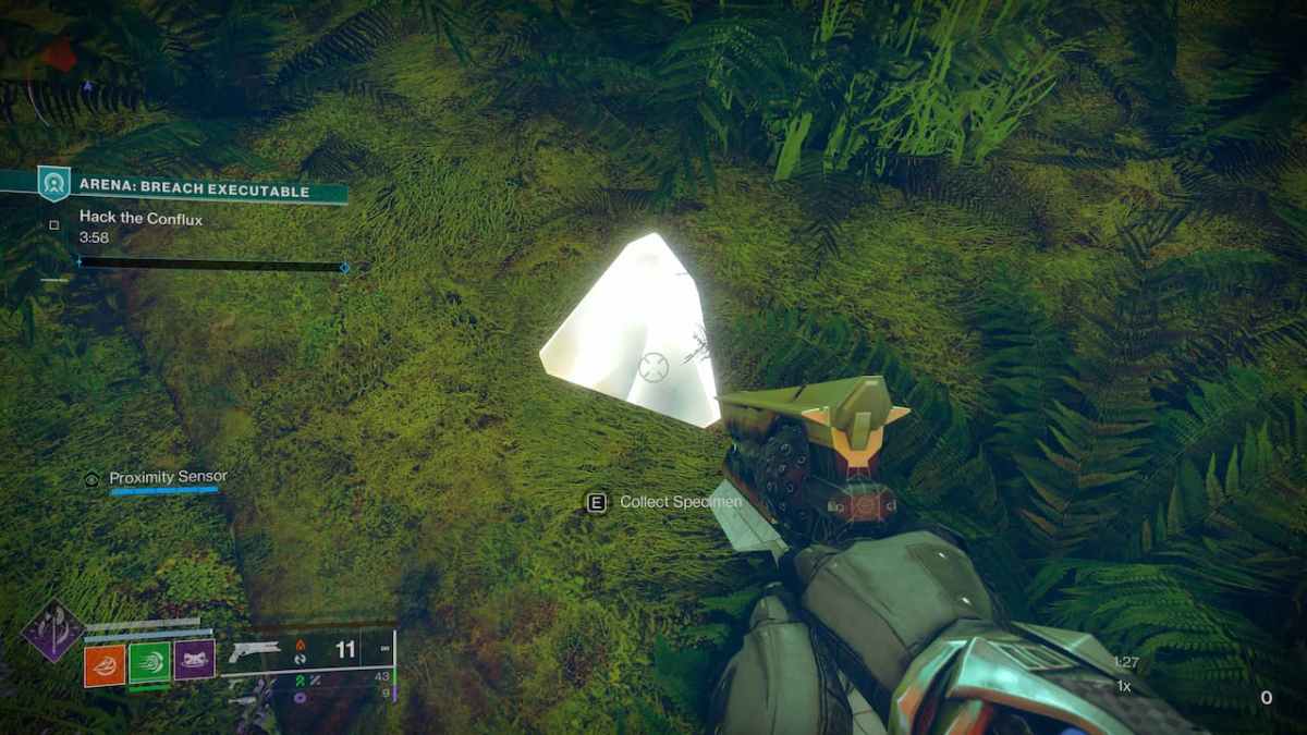 You will have to deliver this specimen to the mainframe room while you complete the Exodus Crash strike on Nessus. It is a very straightforward strike where you will have to investigate the crash site while clearing pathways, deactivating barriers by overloading them, and fighting lots of incoming Vex enemies.