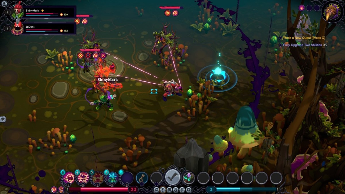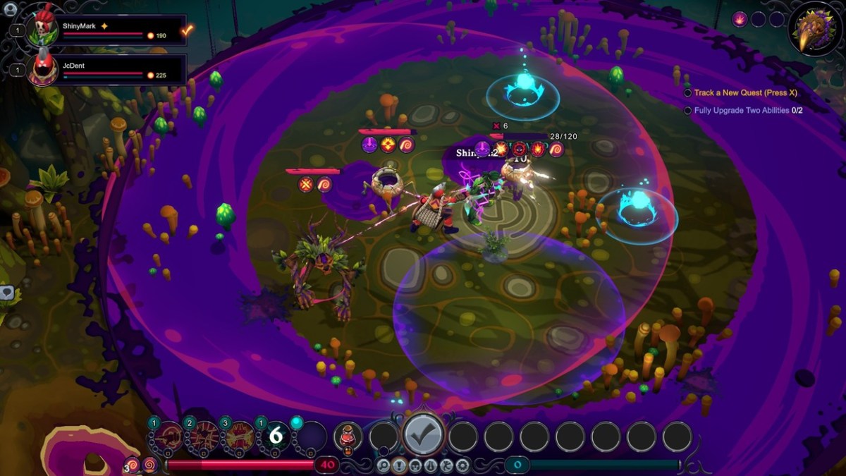 Inkbound is a game of real-time exploration and turn-based battles, of roguelike runs through procedurally generated levels, and of stacking, switching, and upgrading enhancements until you become an unstoppable blender. It’s like Monster Train with no cards or units, but with you and your co-op friends.