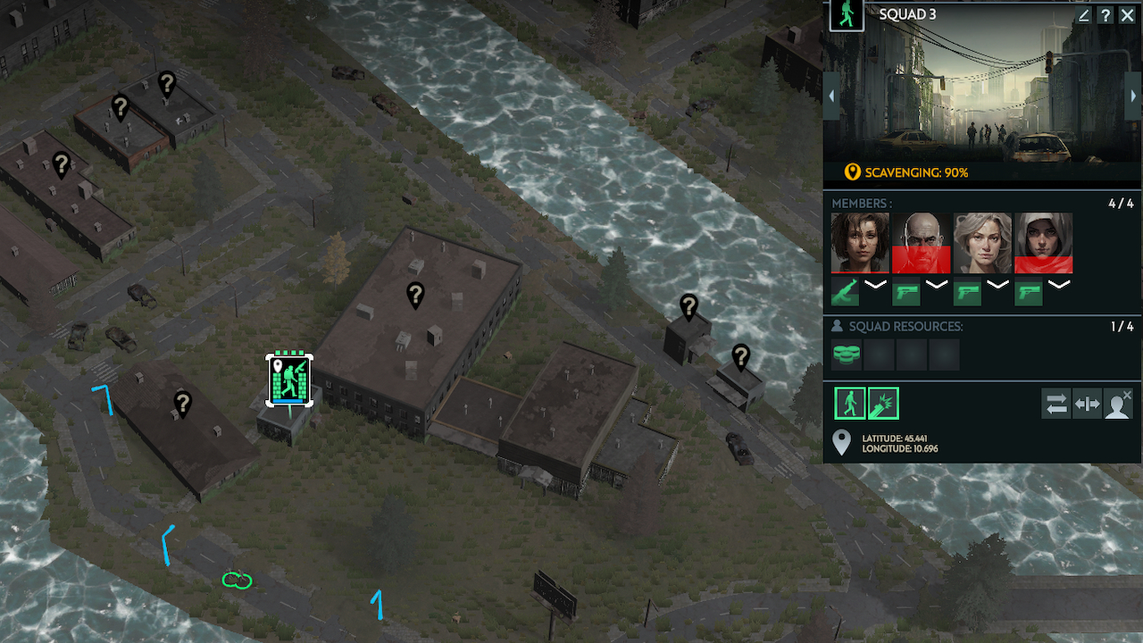 You will send your squads out to scavenge abandoned buildings and send your citizens out to turn those buildings into Shelters, Warehouses, Research Centers, Cookhouses, and other typical apocalypse infrastructure. Rinse and repeat this every day until you struggle to defend yourself, then start again.